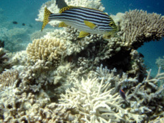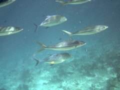 Groupers - Slender Grouper - Anyperodon leucogrammicusGrunts - Indian Ocean Oriental Sweetlips - Plectorhinchus vittatusJacks - Rainbow Runner - Elagatis bipinnulataNeedlefish - Houndfish - Tylosurus crocodilusParrotfish - Bicolour Parrotfish - Cetoscarus bicolor